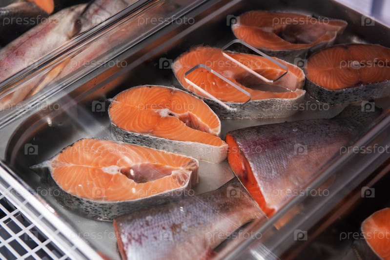 Рыба и морепродукты на рынке. Здоровое питание и концепция рыбного рынка