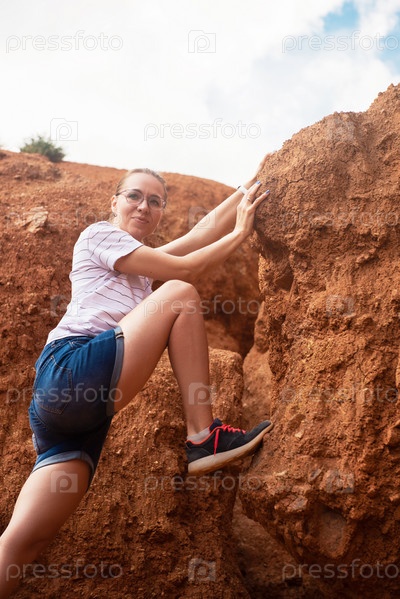 Женщина в долине Марса, пейзажи в горах Алтая, Кызыл-Чин, Сибирь, Россия