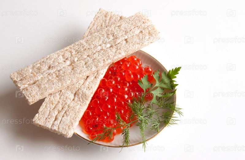 Красная икра и хлебцы
