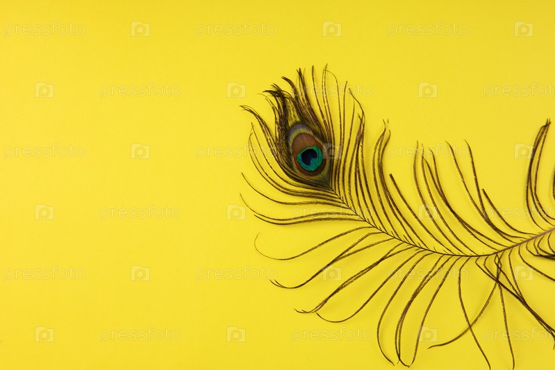 Павлинье перо на цветной бумаге
