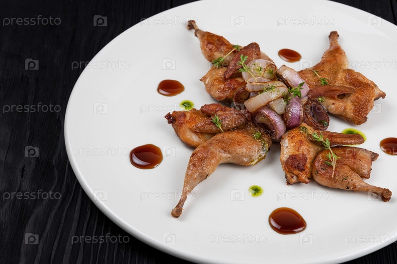 Перепела жареные с овощами