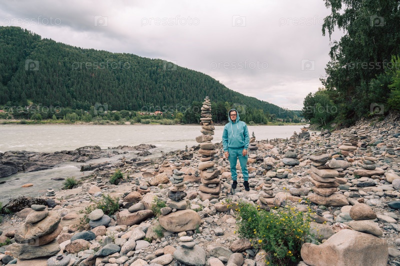 Мужчина у реки Катунь в летний день