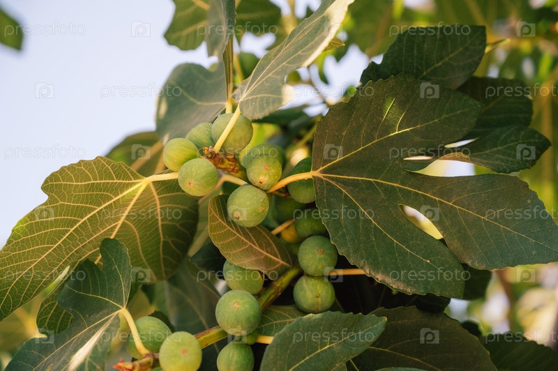 Выращивание плодов инжира на ветвях фигового дерева, красота летнего дня