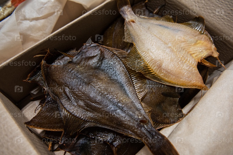 Копченая рыба в крафтовой бумажной коробке. Готовое к поставке производство. Концепция производства копченой рыбы