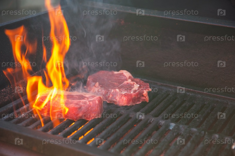 Говяжьи стейки с овощами на гриле с открытым пламенем