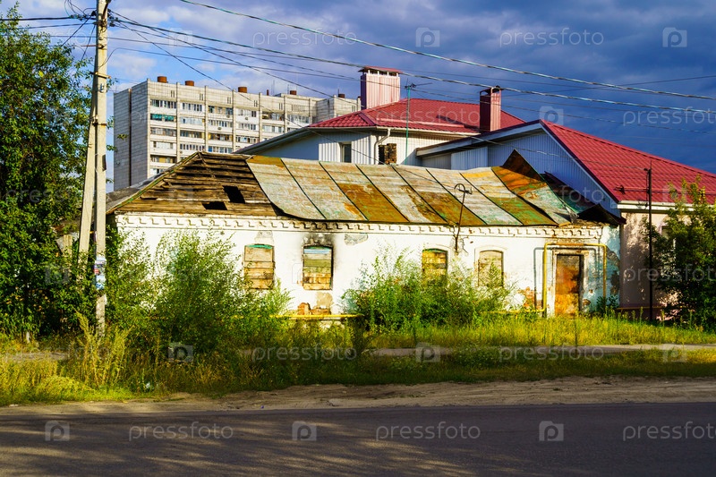 Городской пейзаж. Старинный дом в аварийном состоянии. Воронеж