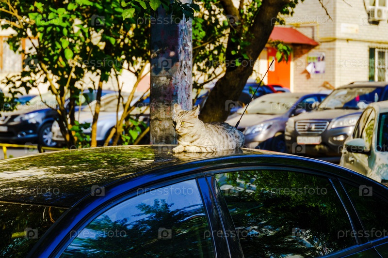 Городской пейзаж. Кот на крыше автомобиля. Воронеж