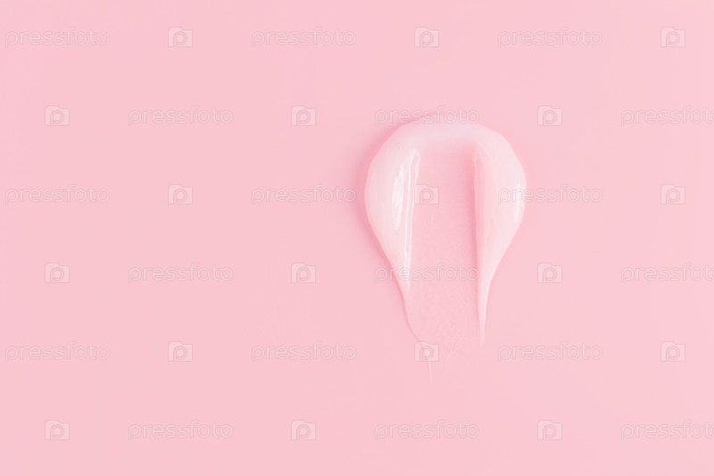 Жидкая косметическая текстура продукта, бальзам для губ, блеск, косметическая маска для губ. Образец жидкой прозрачной текстуры. свотч. розовый фон
