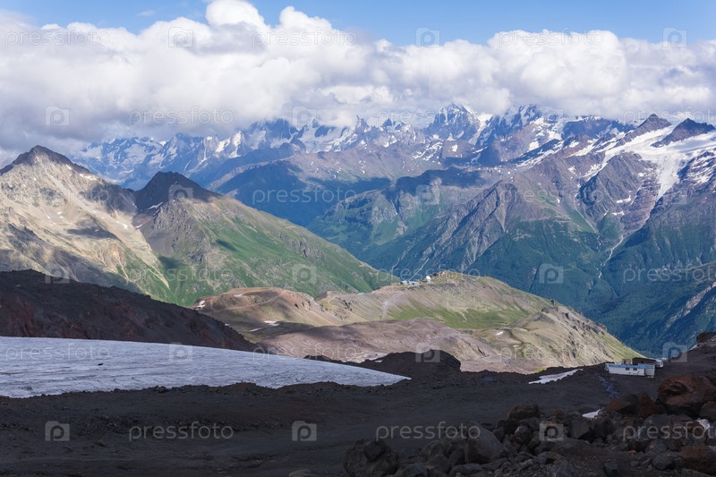 Вид на Кавказские горы в облаках со склона Эльбруса