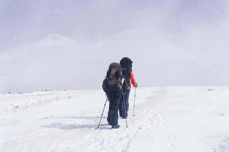 Альпинисты покоряют заснеженную вершину горы