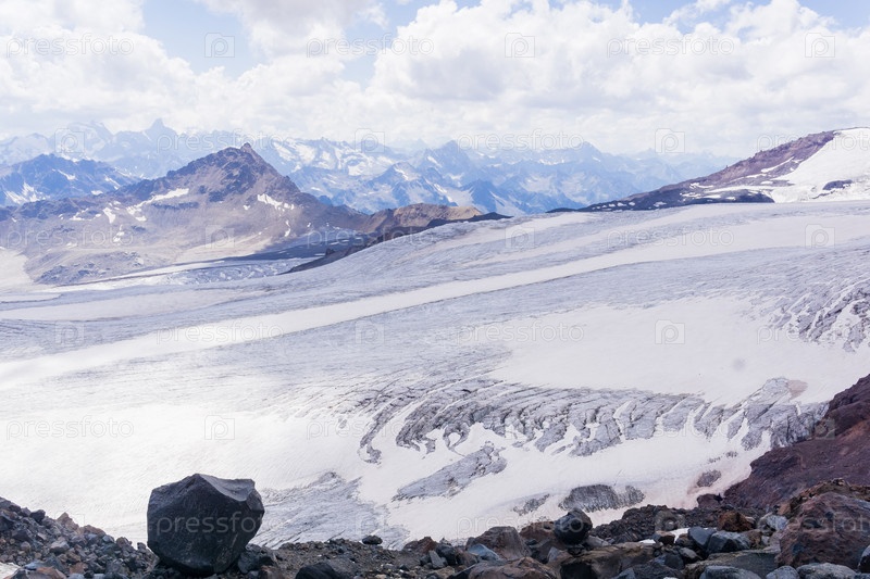 Горный пейзаж с видом на поверхность высокогорного ледника
