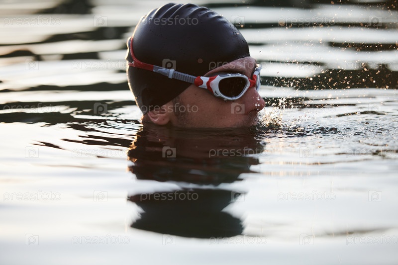 Триатлонист находит безмятежное восстановление сил в озере, наслаждаясь спокойствием воды после интенсивной тренировки