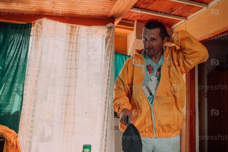 Пчеловод надевает защитный костюм и готовится войти на пасеку