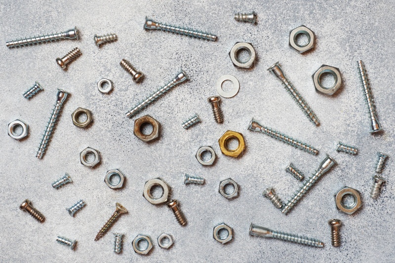 Гаечные ключи, инструменты, болты и гайки на сером бетонном фоне с местом для копирования