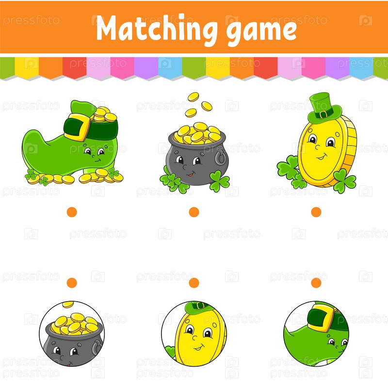 Игра на соответствие для детей. Образовательный развивающий рабочий лист. Нарисуй линию. Страница с заданиями. Персонаж мультфильма. Векторная иллюстрация. День Святого Патрика