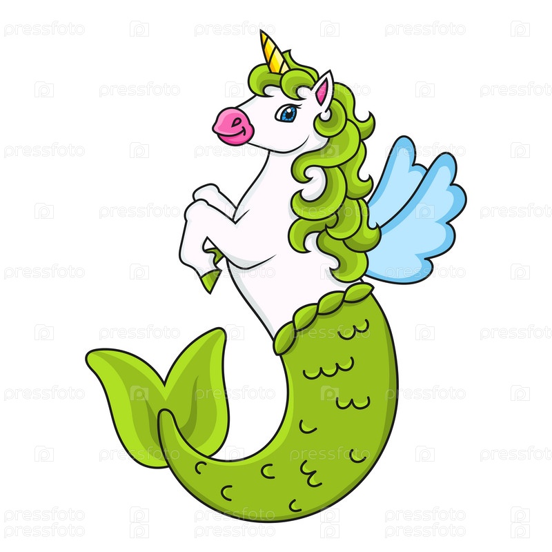 Милая русалка-единорог. Волшебная сказочная лошадь. Персонаж мультфильма. Красочная векторная иллюстрация. Изолированный на белом фоне. Элемент дизайна. Шаблон для вашего дизайна, книги, наклейки, открытки