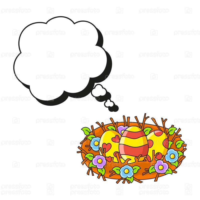 Речевой пузырь разной формы. С милым мультяшным персонажем. Нарисованный от руки. Пасхальная тема. Мыслящие шары. Векторная иллюстрация, изолированная на белом фоне. Стиль каракули