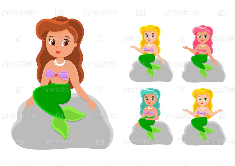 Милый персонаж. Русалочка. Красочная векторная иллюстрация. Мультяшный стиль. Изолированный на белом фоне. Элемент дизайна