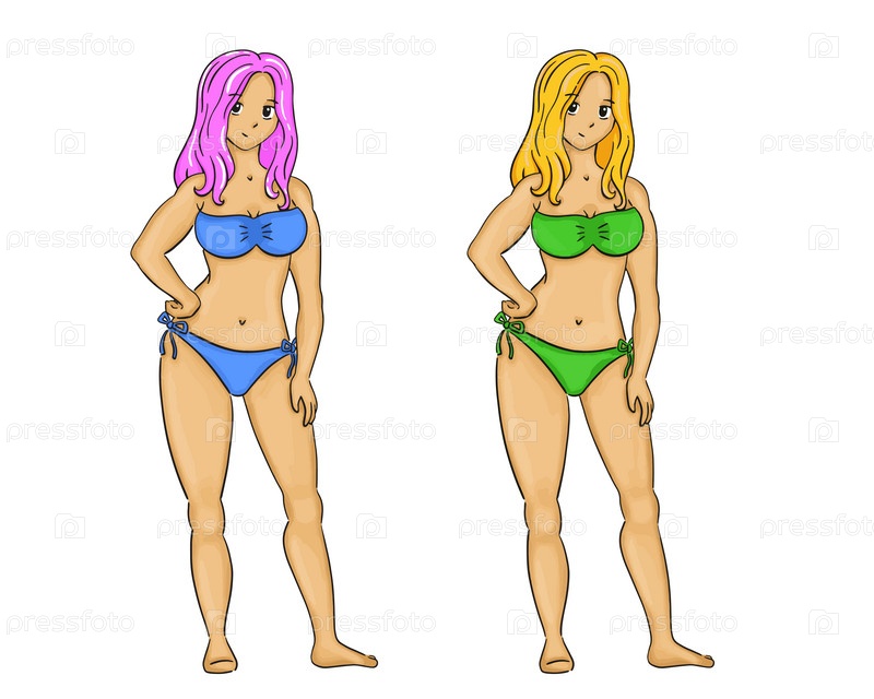 Красивая девушка в купальнике. Элемент дизайна. Векторная иллюстрация на белом фоне. Шаблон для книг, наклеек, плакатов, открыток, одежды