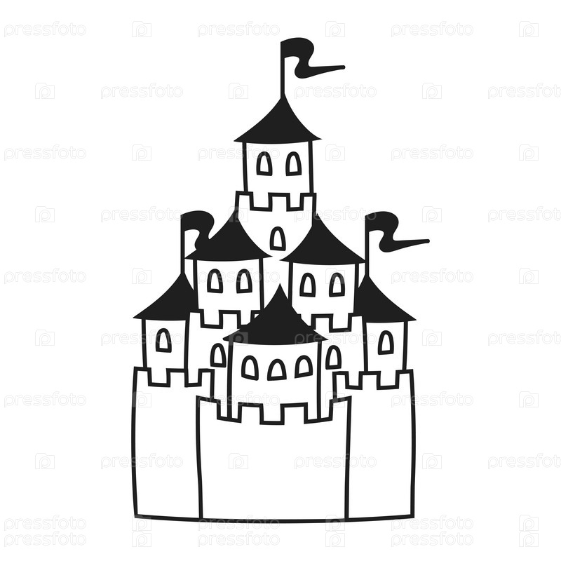 Сказочный замок. Раскраска для детей. Мультяшный стиль. Векторная иллюстрация на белом фоне