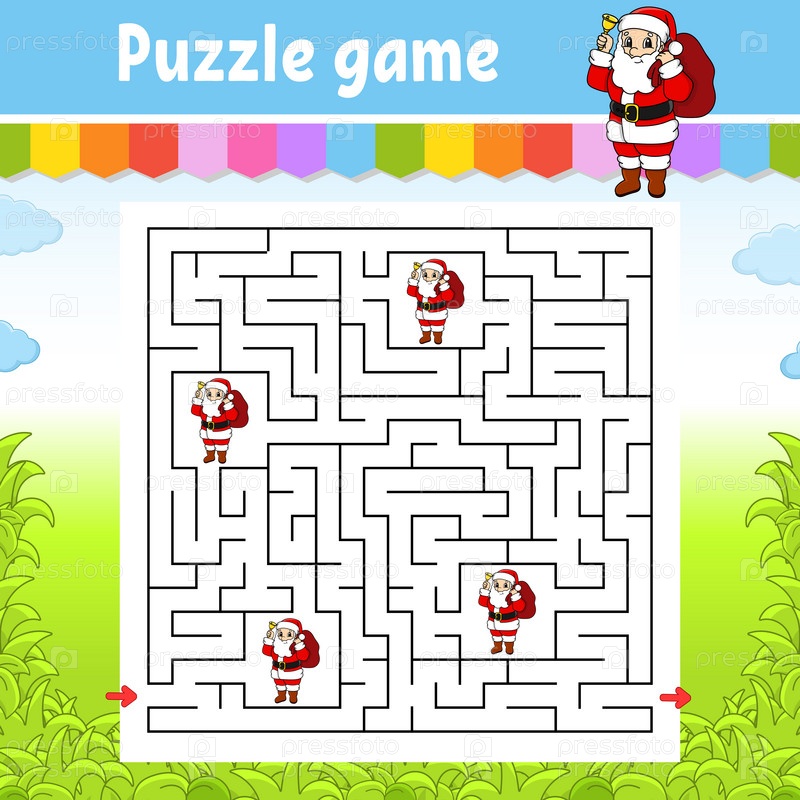 Квадратный лабиринт. Игра для детей. Головоломка для детей. Загадка лабиринта. Найдите правильный путь. Персонаж мультфильма. Векторная иллюстрация