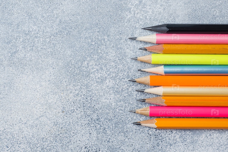 Яркие цветные карандаши на сером столе. концепция школы. Копировать пространство