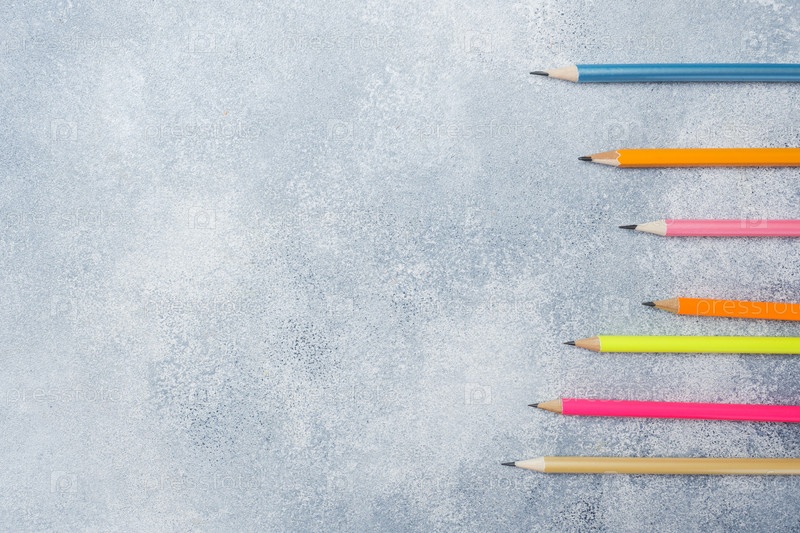 Яркие цветные карандаши на сером столе. концепция школы. Копировать пространство