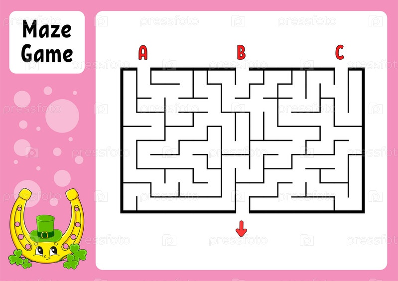 Прямоугольный лабиринт. Игра для детей. Три входа, один выход. Образовательный рабочий лист. Головоломка для детей. Загадка лабиринта. Цветная векторная иллюстрация. Найдите правильный путь. персонаж мультфильма