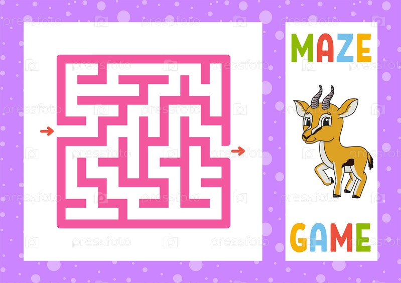 Квадратный лабиринт. Игра для детей. Головоломка для детей. Счастливый персонаж. Головоломка лабиринта. Цветная векторная иллюстрация. Найдите правильный путь. Изолированная векторная иллюстрация. Мультяшный стиль