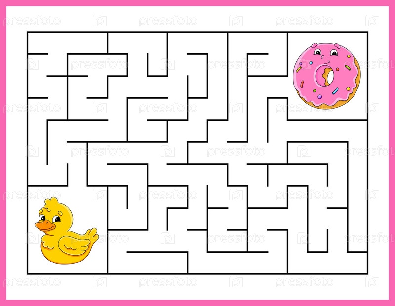Прямоугольный лабиринт. Игра для детей. Забавный лабиринт. Образовательный развивающий рабочий лист. Страница с заданиями. Головоломка для детей. Мультяшный стиль. Загадка для дошкольников. Логическая головоломка. Векторная иллюстрация