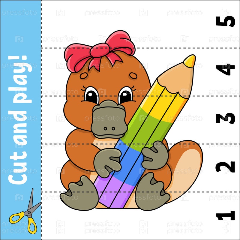 Изучаем цифры от 1 до 5. Разрезаем и играем. Рабочий лист по образованию. Игра для детей. Страница с цветной активностью. Головоломка для детей. Загадка для дошкольников. Векторная иллюстрация. Мультяшный стиль