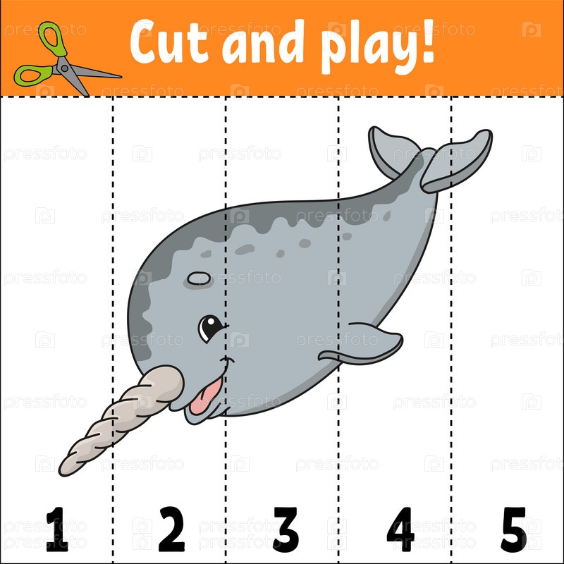 Изучаем цифры от 1 до 5. Разрезаем и играем. Рабочий лист по образованию. Игра для детей. Страница с цветной активностью. Головоломка для детей. Загадка для дошкольников. Векторная иллюстрация. Мультяшный стиль