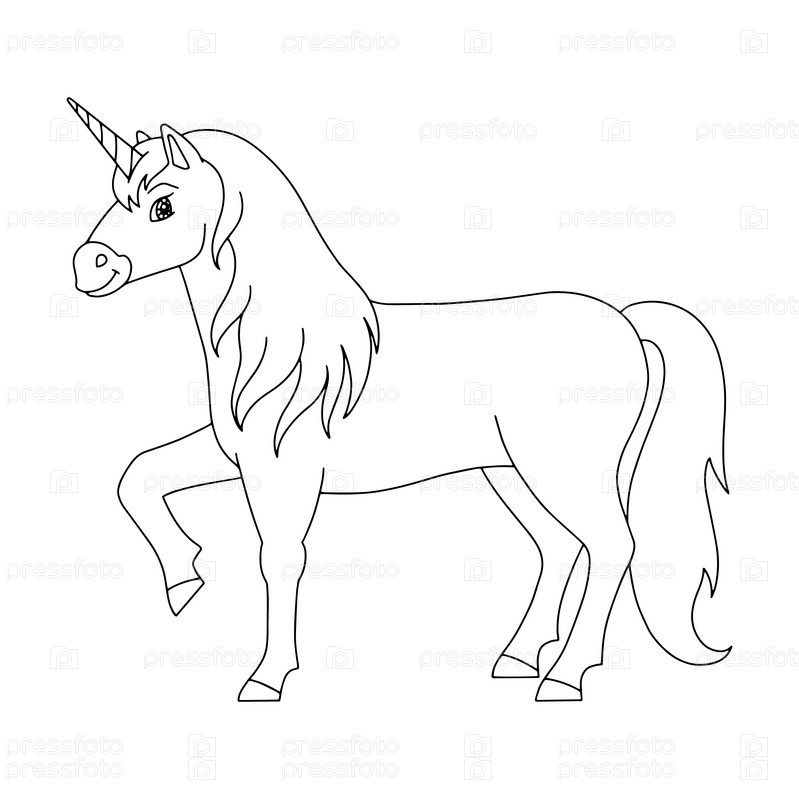 Милый единорог. Волшебная сказочная лошадь. Страница раскраски для детей. Мультяшный стиль. Векторная иллюстрация на белом фоне