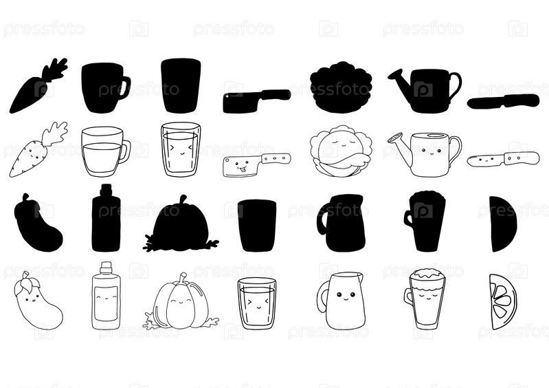 Набор предметов в стиле doodle. Нарисованные от руки. Простые формы. Векторная иллюстрация на белом фоне