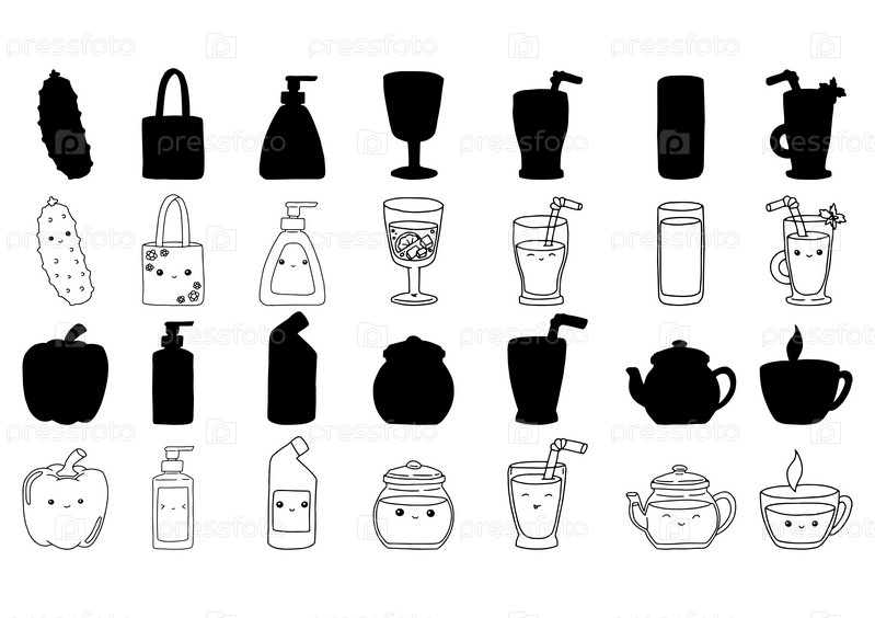 Набор предметов в стиле doodle. Нарисованные от руки. Простые формы. Векторная иллюстрация на белом фоне