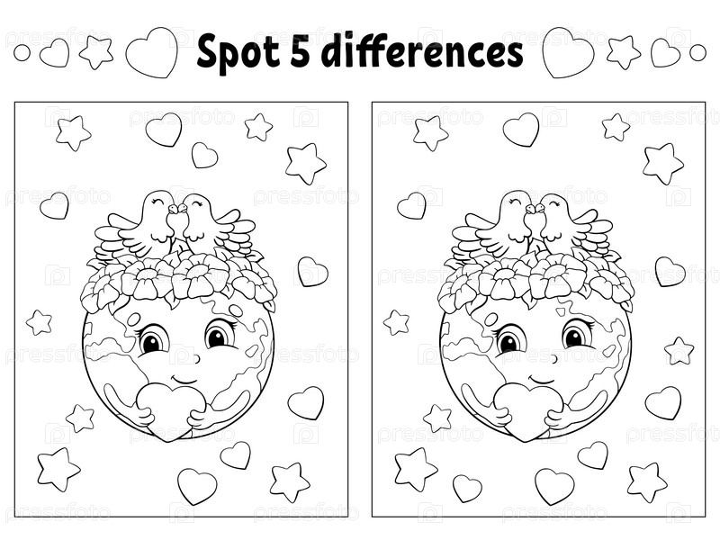 Найдите пять отличий. Раскраска для детей. Лист с заданиями для детей. Векторная иллюстрация на белом фоне