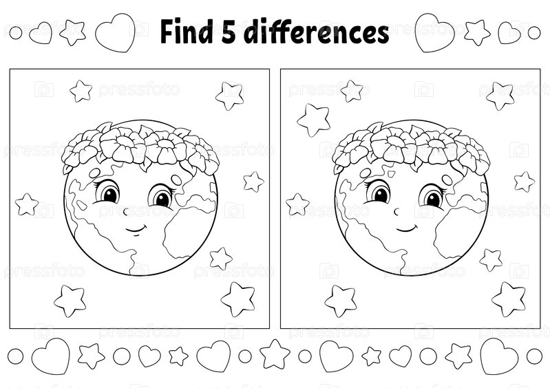Найдите пять отличий. Раскраска для детей. Лист с заданиями для детей. Векторная иллюстрация на белом фоне
