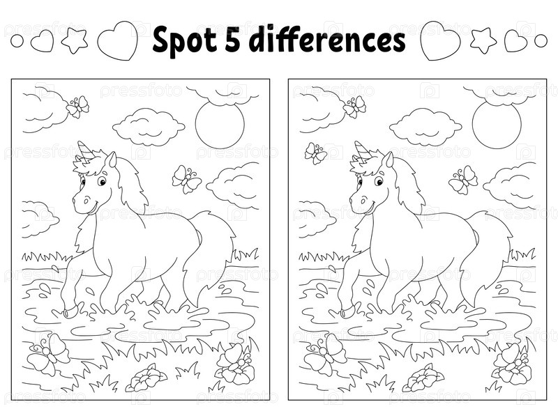 Найдите пять отличий. Раскраска для детей. Лист с заданиями для детей. Векторная иллюстрация на белом фоне