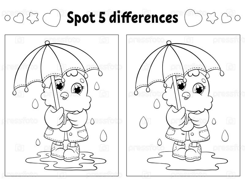 Найдите пять отличий. Раскраска для детей. Лист с заданиями для детей. Векторная иллюстрация на белом фоне