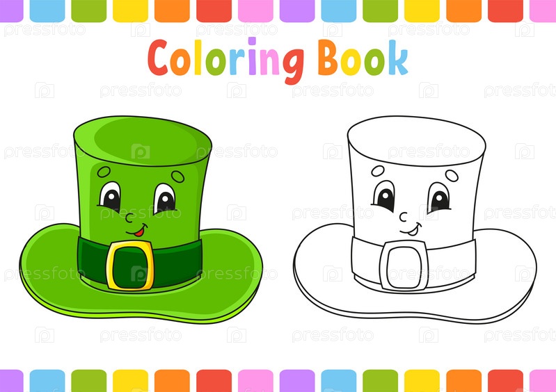 Раскраска для детей. День Святого Патрика. Персонаж мультфильма. Векторная иллюстрация. Фэнтези-страница для детей. Черный контурный силуэт. Изолирован на белом фоне