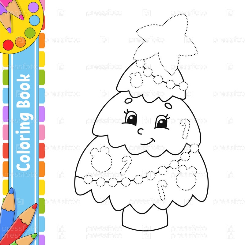 Елка. Раскраска для детей. Мультяшный стиль. Векторная иллюстрация на белом фоне