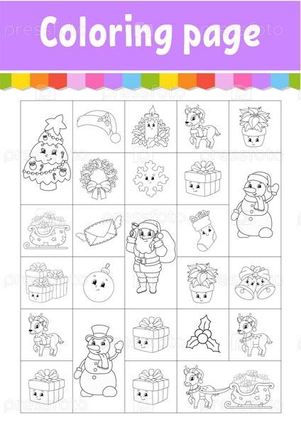 Рождественская тема. Раскраска для детей. Мультяшный стиль. Векторная иллюстрация на белом фоне