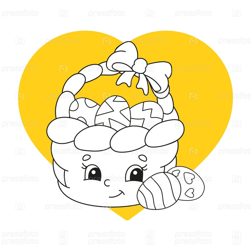 Раскраска для детей. Веселый персонаж. Векторная иллюстрация. Милый мультяшный стиль. Фэнтезийная страница для детей. Черный контурный силуэт. Пасхальная тема