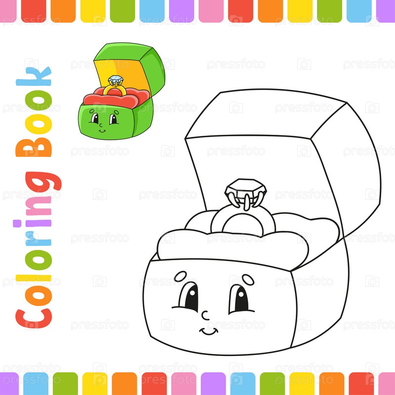 Раскраска для детей. Веселый персонаж. Векторная иллюстрация. Милый мультяшный стиль. Фэнтези-страница для детей. Черный контурный силуэт. День святого Валентина