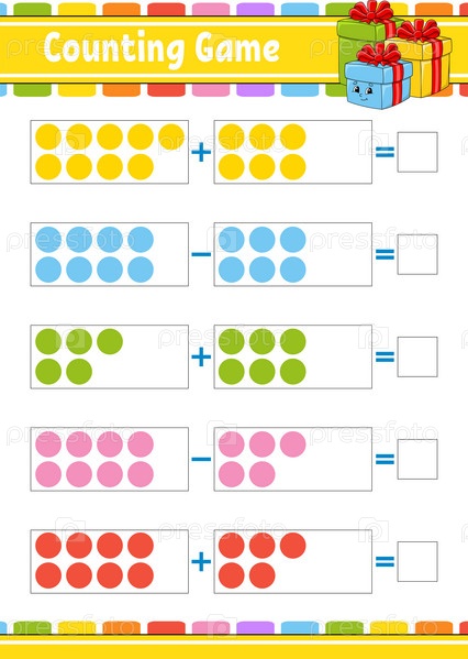 Сложение и вычитание. Задание для детей. Образовательный развивающий рабочий лист. Цветная страница активности. Игра для детей. Рождественская тема. Изолированная векторная иллюстрация. Мультяшный стиль