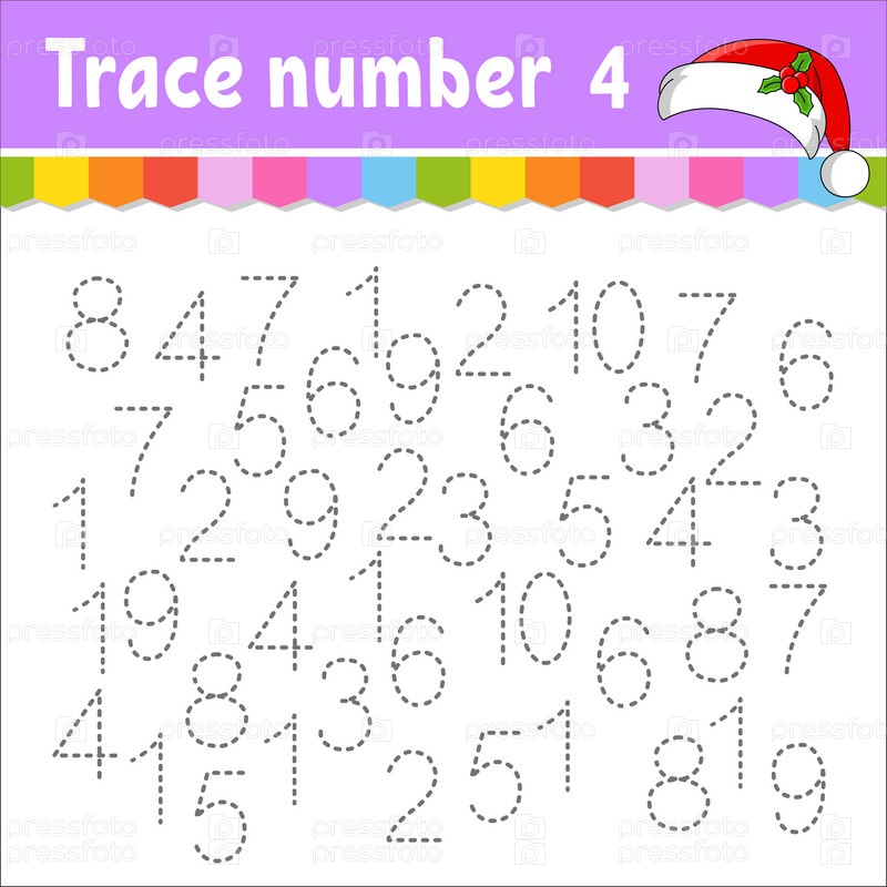 Номер трассировки. Практика письма. Изучение цифр для детей. Рабочий лист по развитию образования. Страница с заданиями. Рождественская тема. Изолированная векторная иллюстрация в милом мультяшном стиле