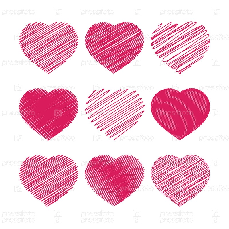 Набор красных сердец, изолированных на белом фоне. С абстрактным узором линий. Простая плоская векторная иллюстрация. Подходит для поздравительных открыток, свадеб, праздников, сайтов