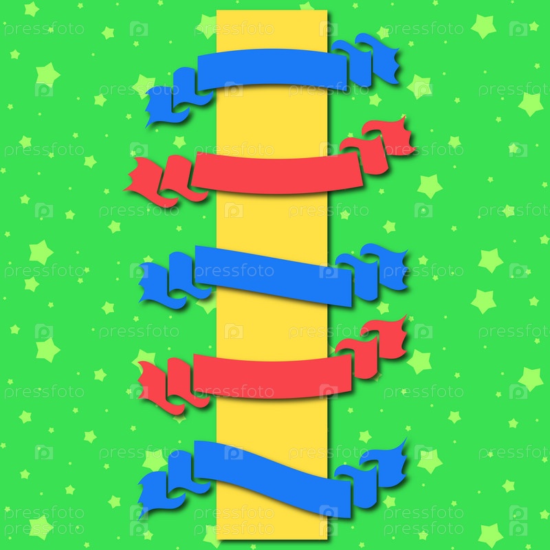 Набор плоских цветных лент, изолированные баннеры на зеленом фоне со звездами