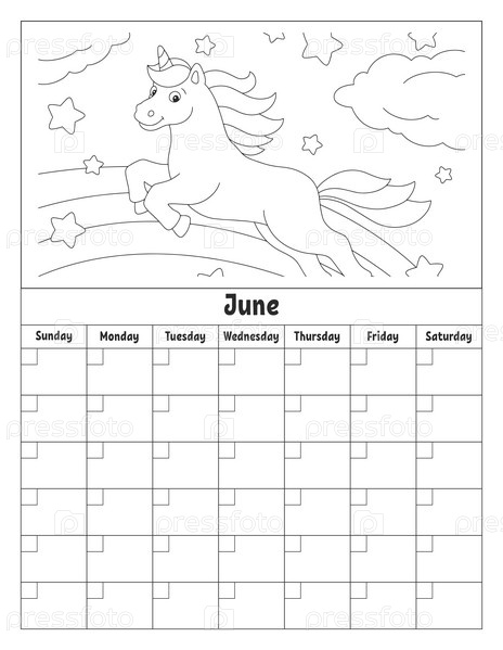 Пустой шаблон календаря на один месяц без дат. Красочный дизайн с милым персонажем. Векторная иллюстрация