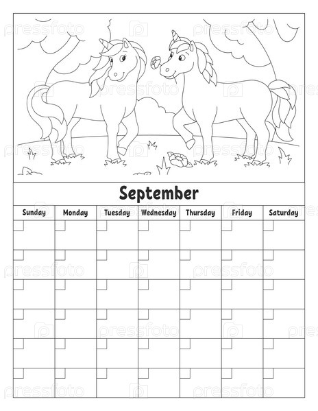Пустой шаблон календаря на один месяц без дат. Красочный дизайн с милым персонажем. Векторная иллюстрация